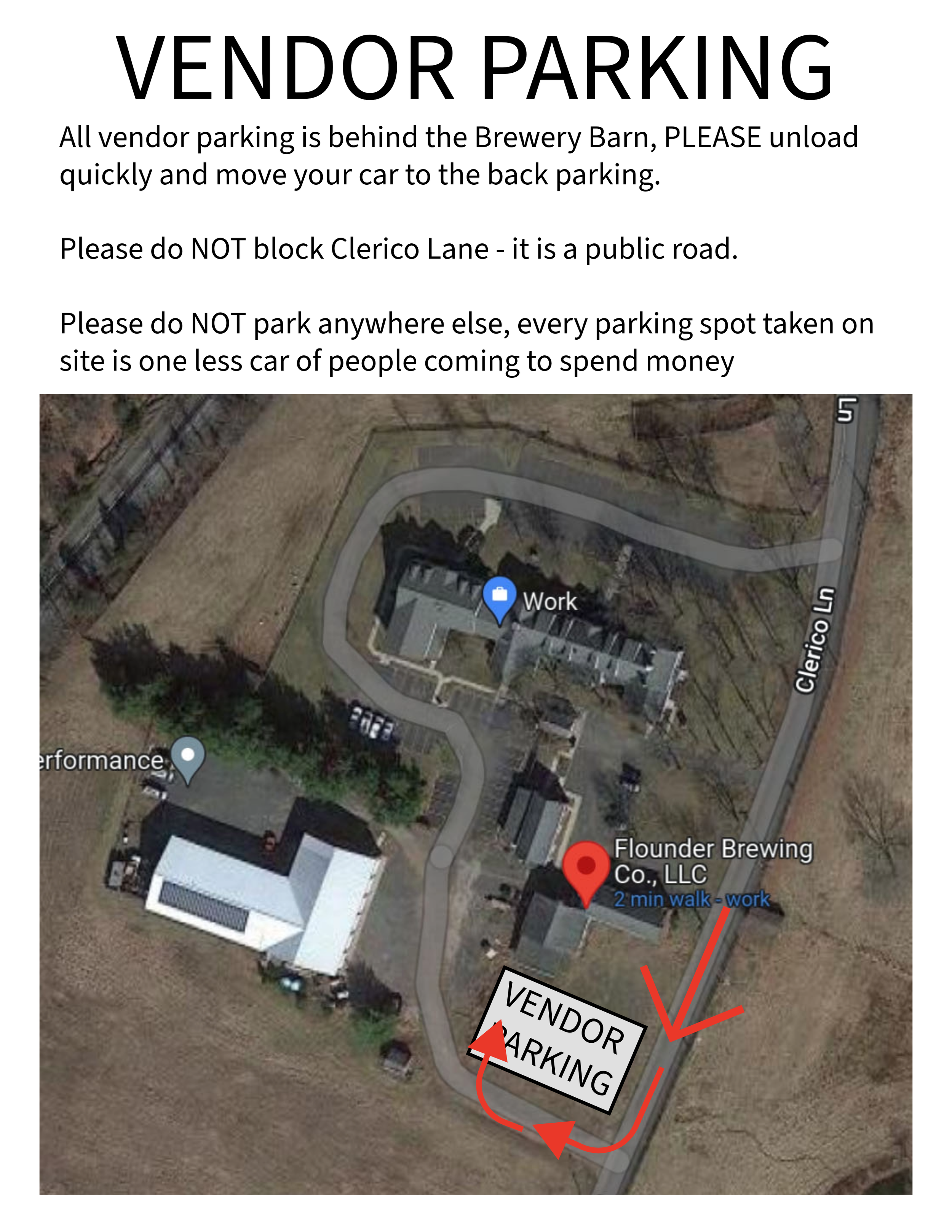 Vendor Arrival and Parking Map: